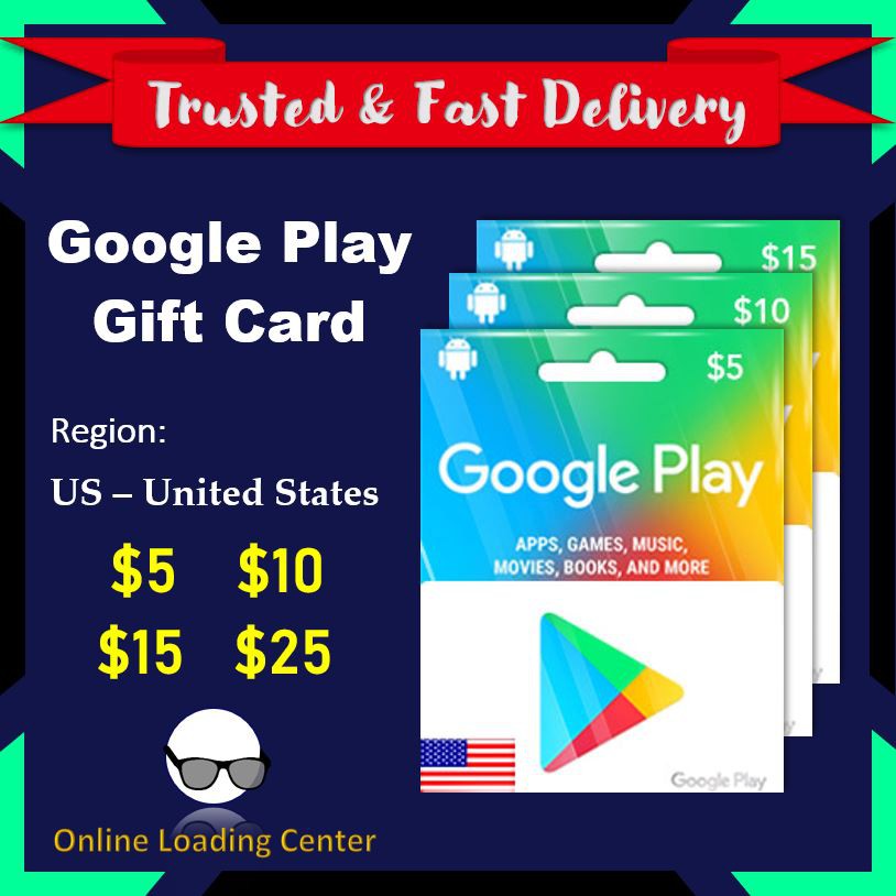 Google play gift cards are available in $5, $10, $15 and $25 increments.