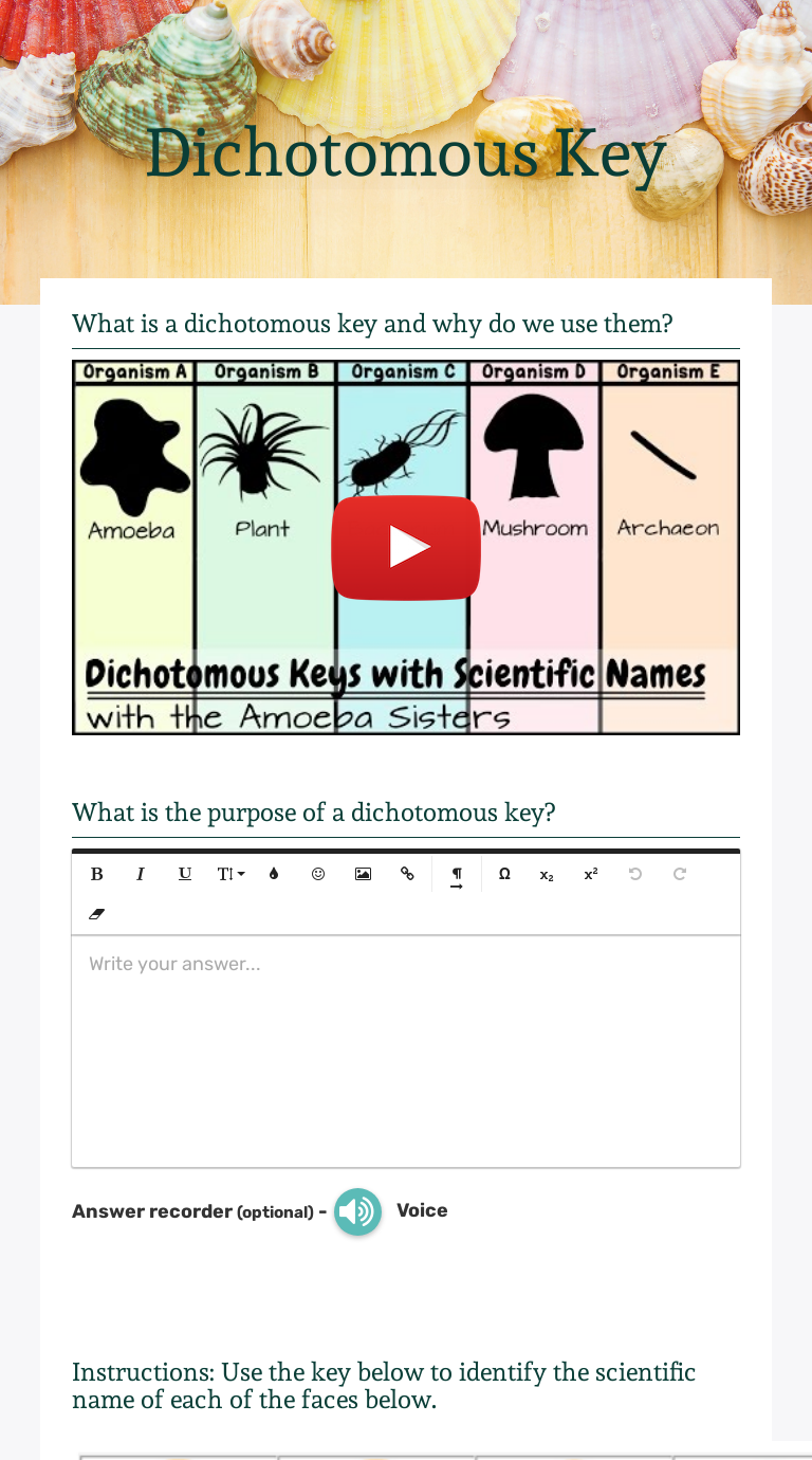 They are given images of the 28 organisms and an answer sheet to do this activity as well as the dichotomous key.to do this acti To classify an organism, scientists often use a dichotomous key. Depending on the answer to the question, you'd be guided to another question. As a class, use the key to identify the book, pencil, sheet 7th grade science classification unit information milestones domain weight.